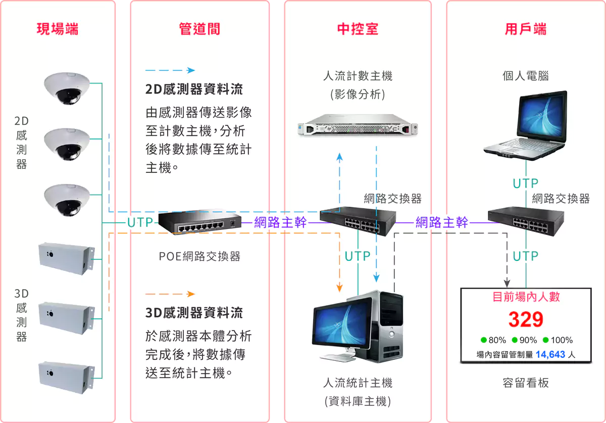 利用影像辨識出入口/樓層雙向即時人數,提升客流量準確度
